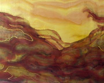 Each handpainted scarf is elegant, exquisite, and unique. No two scarves are ever the same. Using imported French dyes, these 11"x60" scarves are available in a wide variety of colors. Choose your colors from below, and I will customize a scarf for you, or choose from the above scarves, and I will make one similar. If you want a scarf to go with a specific outfit, I can do that as well. Please note, it's a little hard to see the exact color, or intricacies of the scarves, over the Web. The two samples on the far left (above) go with all of the earth tones - including taupe, olive, beige, avocado, sienna, brown, or gold. To place your order, please answer these four questions: 1. Colors: Earth Tones, Olive, Brown, Purple, Teal Blue, Raspberry, Kelly Green, Red, Yellow, Black, Gold? If you desire another color, I will do my best to create it. 2. Gold Metallic overlay? The scarf (third from the left above), has a random, metallic gold overlay. Metallic gold can be added to any scarf. 3. Pattern: Long vertical stripe, diagonal stripe, random or solid? The scarves above will give you an idea of each of these. 4. Habotai (more pastel)? or Crepe de Chine (for more intense color)? If all this sounds too complicated, just email me and say, "Would you please make me a scarf?" ***Please email your order to Randy, then send payment by check to: Randy Peyser, P. O. Box 151, Aromas, CA 95004. Tax and shipping: Add $5.
